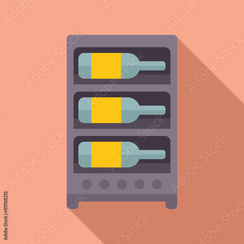 Flat design icon of a wine cooler with three bottles, against a soft pink background