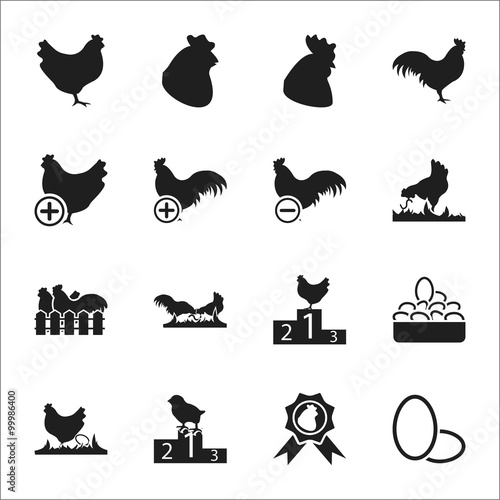 Chicken silhouettes set, bird pack of vector silhouette design, isolated background