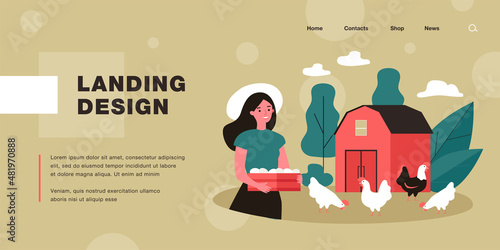 Poultry Farming with Farmer, Cage, Chicken and Egg Farm on Green Field Background View in Hand Drawn Cute Cartoon Template Illustration