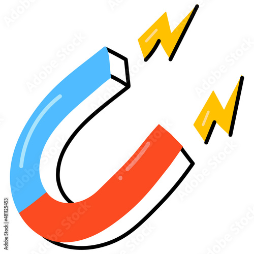 Physics magnet icon in modern doodle style, scalable vector of attraction