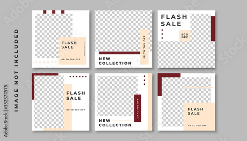 Set of editable social media feed post square style photo collage banners. Minimalism design background templates for social media posting and online advertising. Vector discount promotion