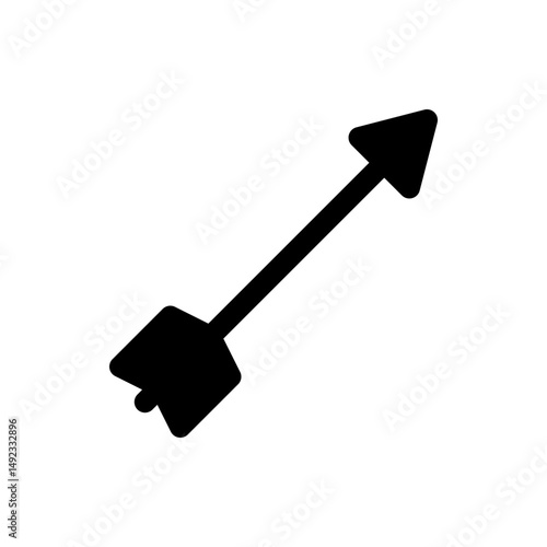 Stylized flat black arrow icon with feathered fletching designed for digital graphics and user interfaces