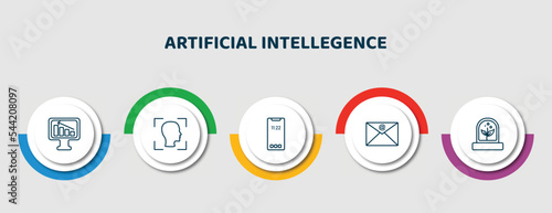 set of artificial intellegence thin line icons. artificial intellegence outline icons with infographic template. linear icons such as panorama, rearview mirror, , hexagons, finger control vector.