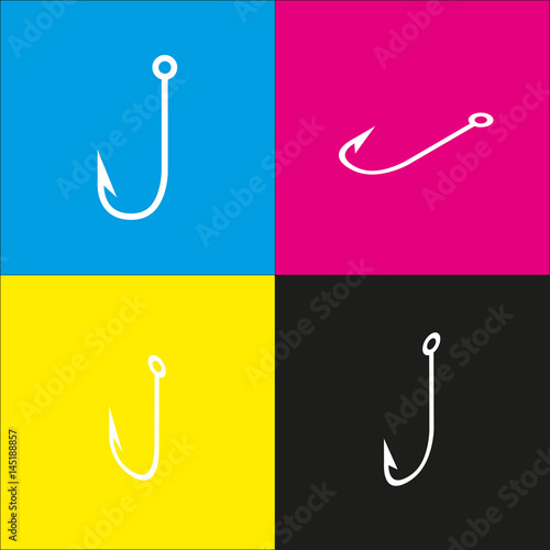 Holiday flags garlands sign. Vector. White icon with isometric projections on cyan, magenta, yellow and black backgrounds.