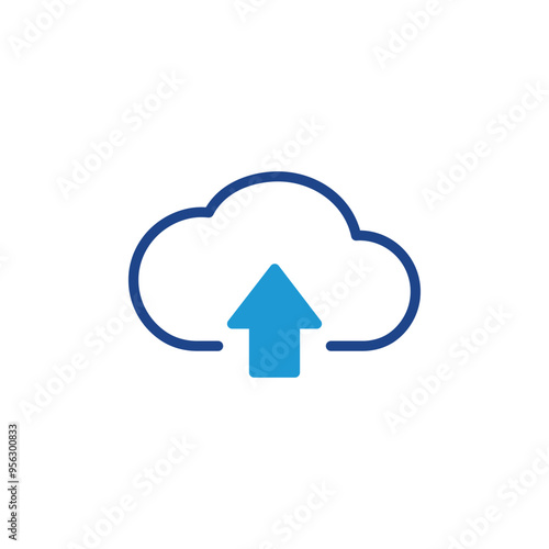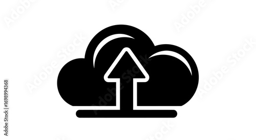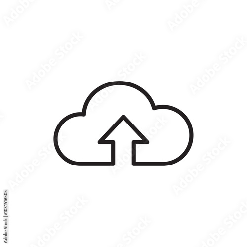 Vector art of a cloud upload icon represents data storage and internet computing, isolated on white background it symbolizes technology, security, and access to digital information