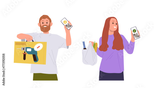 People making payments in different ways vector illustration