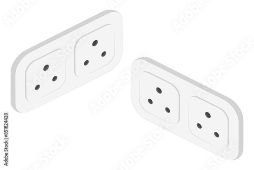 Isometric Switches and sockets set. Type A. AC power sockets realistic illustration. Power outlet and socket isolated. Plug socket.