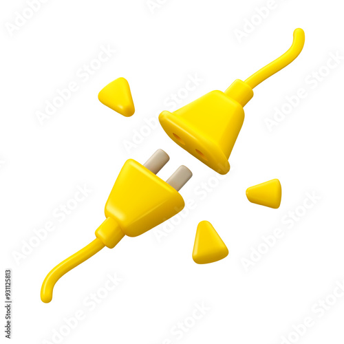 Vector isolated icons of power socket and damaged wire of plug on white background.