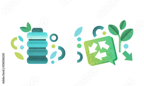 Green Ecology Flat Icon and Eco-friendly Environmental Symbol with Electric Battery Vector Set