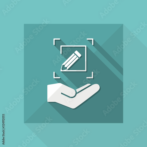 A modern house is set among trees and greenery under a clear, sunny sky House restyling Customizable Flat Illustration