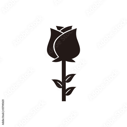 Rose. Stylized flower symbol. Outline hand drawing icon. Decorative element for wedding birthday design with lettering thank you.
