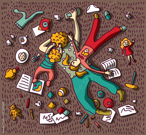 Set of happy diverse ethnicity and race single parents. Cute cartoon characters isolated on white background. Vector illustration in flat style.