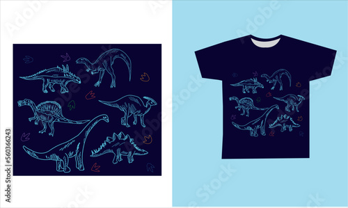 dinosaur skeleton t-shirt desing. vector illustration. Printable t-shirt design for dinosaur