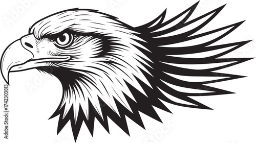 A striking black and white logo featuring a stylized eagle or phoenix head and wing within a circular emblem, conveying strength and freedom.