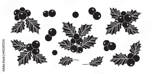 Holly berry vector set, christmas icon, sprig with leaves, holiday plant decoration. Simple illustration