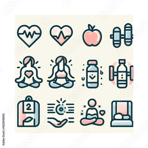 Medical Icons Collection: A vibrant set of medical icons, perfectly representing diverse aspects of healthcare and wellness, embodying the essence of health and well-being.