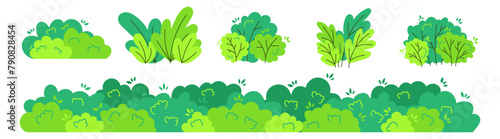 Cartoon shrub bush set. Garden green decoration bushes, illustrated hedge shrubs plants isolated on white