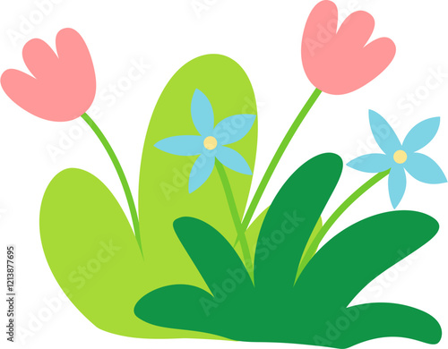 Spring bush, shrub green garden cartoon hedge set with green leaves, flower blossom,berries. Summer landscape nature cartoon objects collection isolated on white. Spring round bush plants floral icons