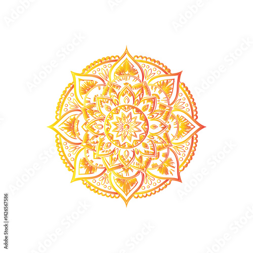 A detailed mandala design featuring floral patterns, circular shapes, and intricate line work. Ideal for coloring books or art therapy.