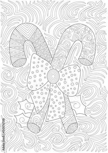 Mug Filled With Candy Cane Leaves and Festive Decoration Intricate Design for Holiday Coloring Activity
