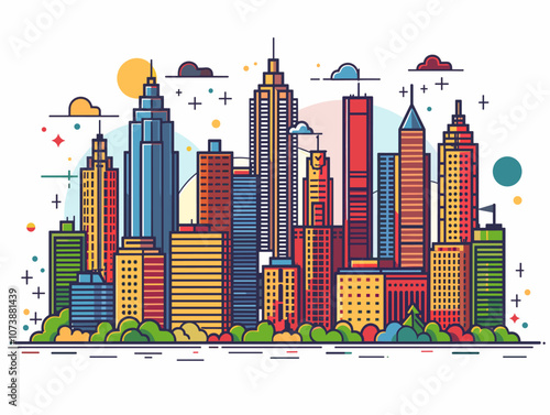 American cities skyline trendy illustration linear