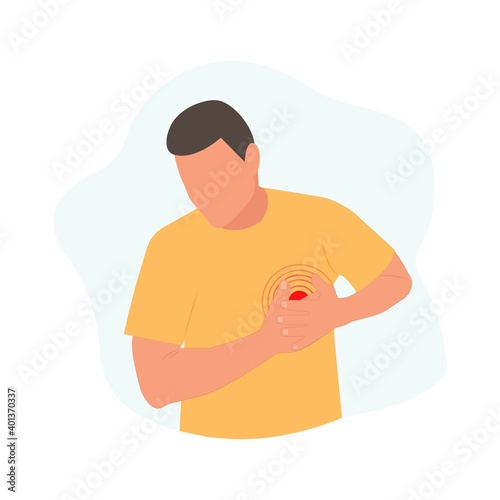 Common panic attack symptoms of disorder vector illustration. Chest pain trembling blurred vision lack of air hyperhidrosis and vomiting flat style. Medicine concept. Isolated on white background