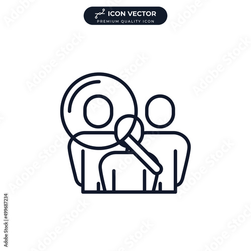Customer audience candidate choose aim icon vector graphic illustration set, man woman focus group search sign symbol design, person leaser target selection goal idea, user selection hire image