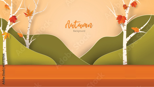 podium stage autumn season paper art colorful for show banner sale vector illustation