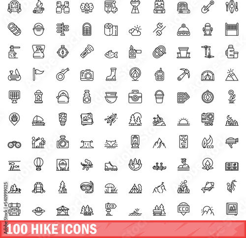 100 hike icons set. Outline illustration of 100 hike icons vector set isolated on white background