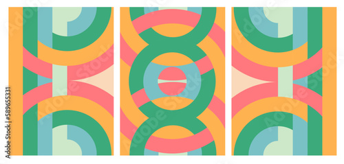 Set of geometric pattern element in mid-century style. Retro abstract collection of colorful circle, curve, stripes, sparkle shapes. Modern trendy design for cover, business card, poster, wall art.