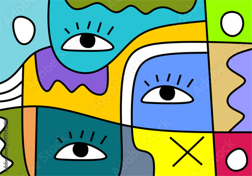 Colorful abstract background of faces. Vector design of geometric shapes and lines in the cubist style
