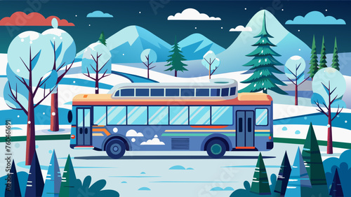 Cartoon train windows with scenic mountain view. Modern transportation. City transportation. Public facility.