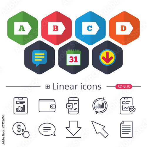 Energy efficiency in flat style. D ecological class vector illustration on isolated background. Electric performance sign business concept.
