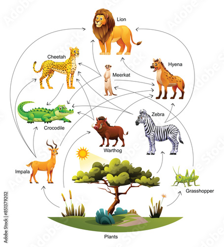 Biosphere vector illustration. Labeled all natural ecosystems with wildlife