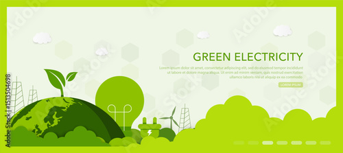 green energy electricity. Sustainable economic and green energy. Climate change and sustainability. Vector illustration.