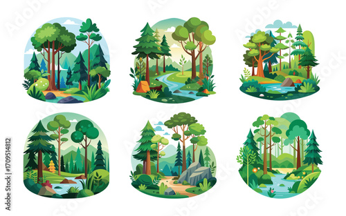 Stylized grove illustration showcasing simplified tree forms against a plain backdrop for design and graphics showcasing  forest ecosystem
