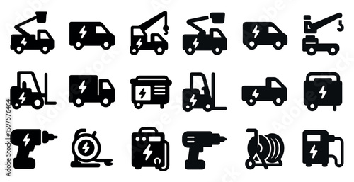 Energy Industry Icons Collection Vector Illustration Electricity and Power Symbols