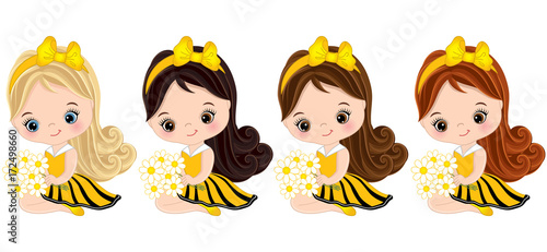 happy little girls holding hands. International Women's Day concept. Diverse group of babies girls. Cute cartoon characters. Vector illustration