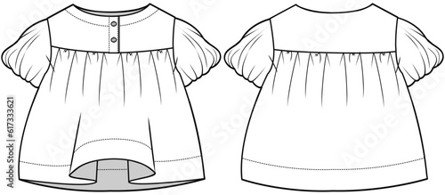 T-shirt design for mini girls. long sleeve girl child top flat sketch vector