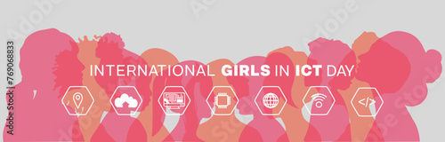 International Day of the girl child background with three little girls holding hands on yellow background.