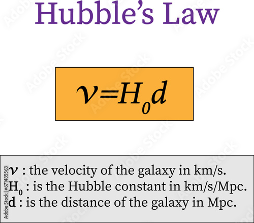 Hubble's law , Hubble Lemaître law . Vector illustration.