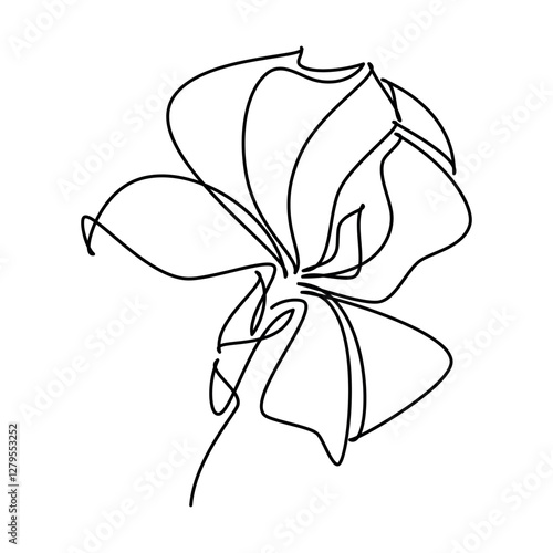 Iris flower in one line style isolated on white background. Continuous art in an elegant style for prints, tattoos, posters, textiles, postcards, etc. Vector illustration of a beautiful iris flower.