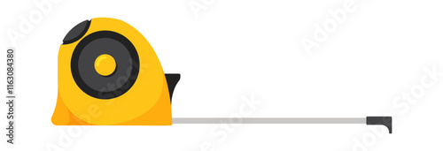 Tape measure A flexible tool used for measuring distance commonly made of reinforced fiberglass or metal. It has a long thin strip with markings in. Cartoon Vector.