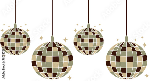 Hand drawn whimsical disco ball illustration, doodle style disco ball, retro style