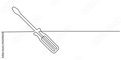 Continuous line design of hammer and saw. Single line decorative element draw. one line Icon drawing with white background