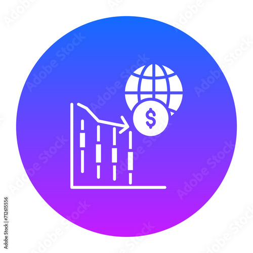 Stock market crash or economic / financial recession with falling bar graph flat color vector icon for finance apps and websites