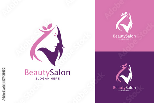 Beauty hair logo for woman with creative concept and business card design Premium Vector