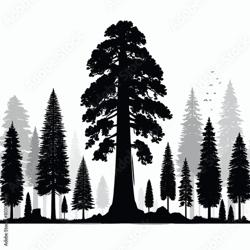 Redwood Tree Vector illustration in black and white - Sequoioideae Plant Silhouette Design