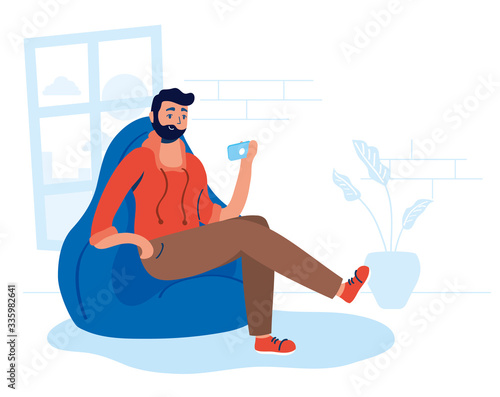 Handsome man looking at camera with head lying on crossed arms. arms resting is looking at the camera. Flat vector illustration isolated on white background