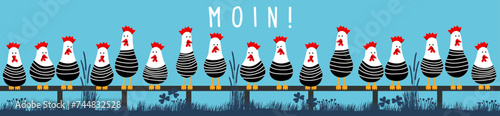 Moin mit Leuchtturm und Möwen